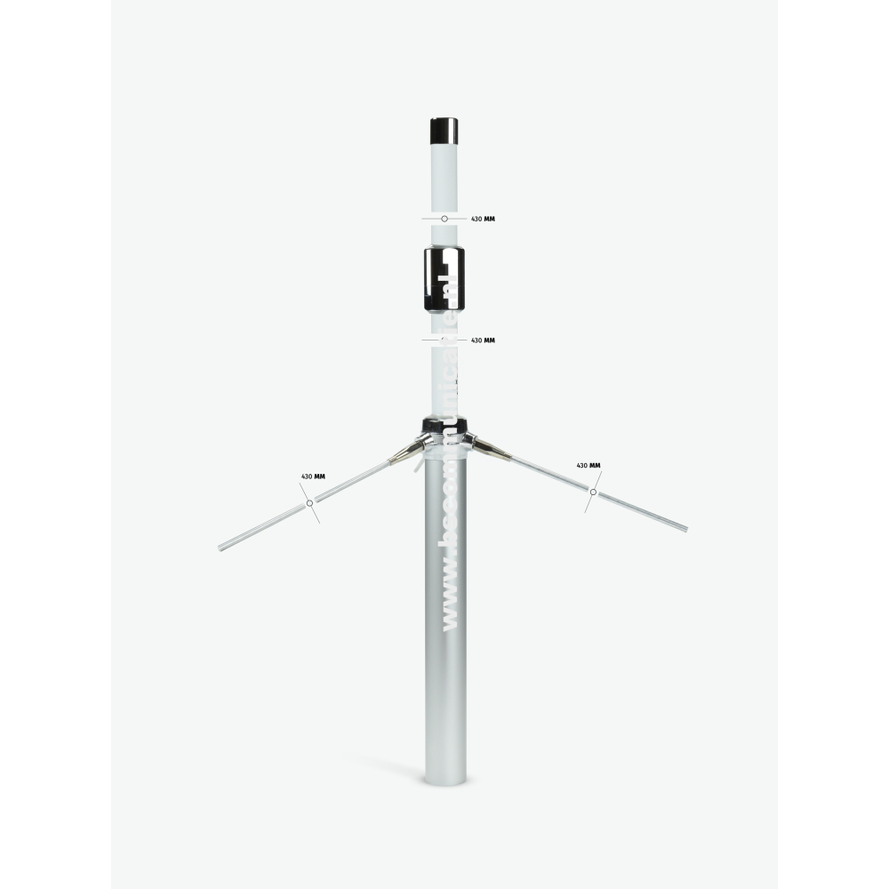 - Gain: 6.0 dBi (144 MHz), 8.0 dBi (430 MHz)
