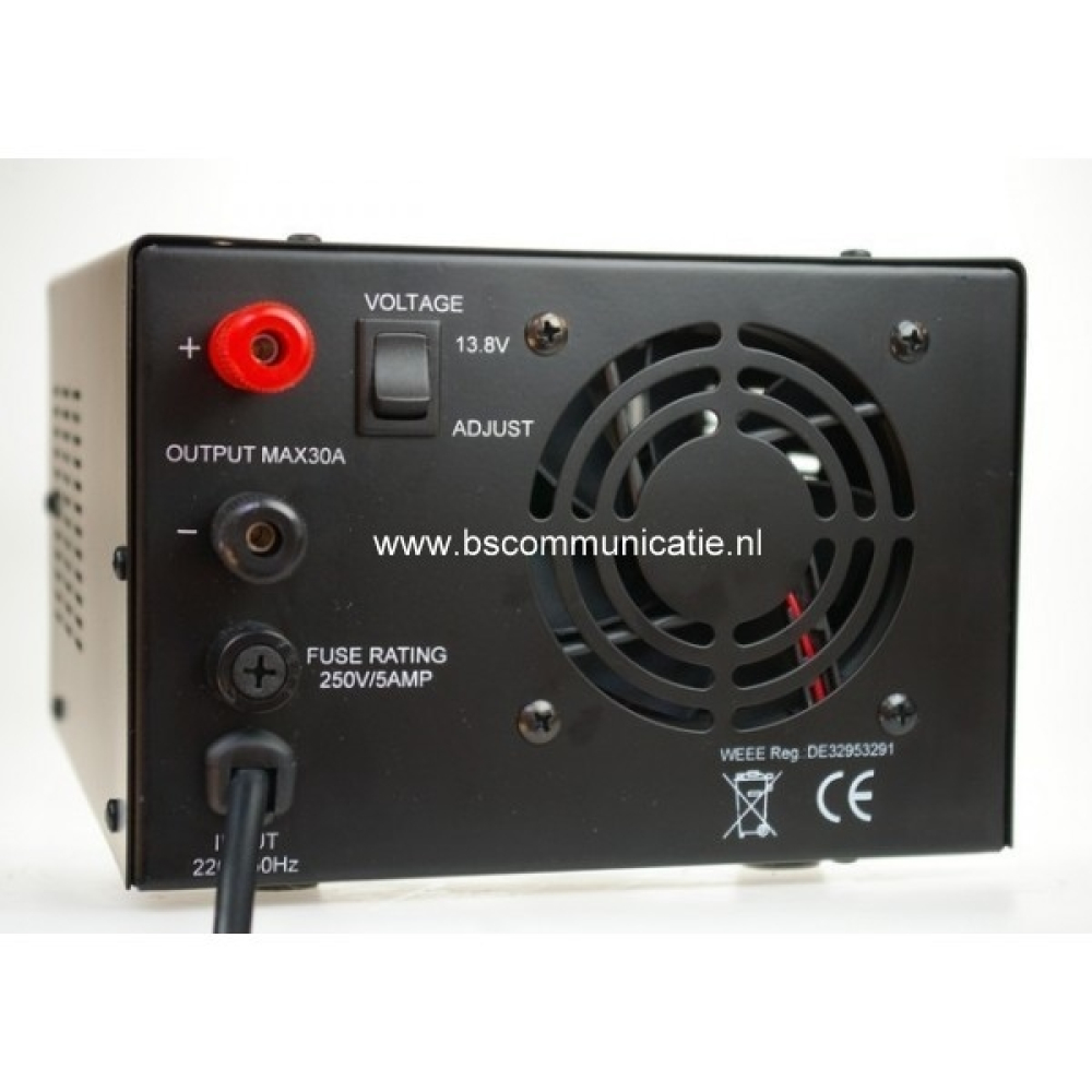 - Optioneel regelbare output voltage 9-15V DC or 13.8 V DC fixed voltage