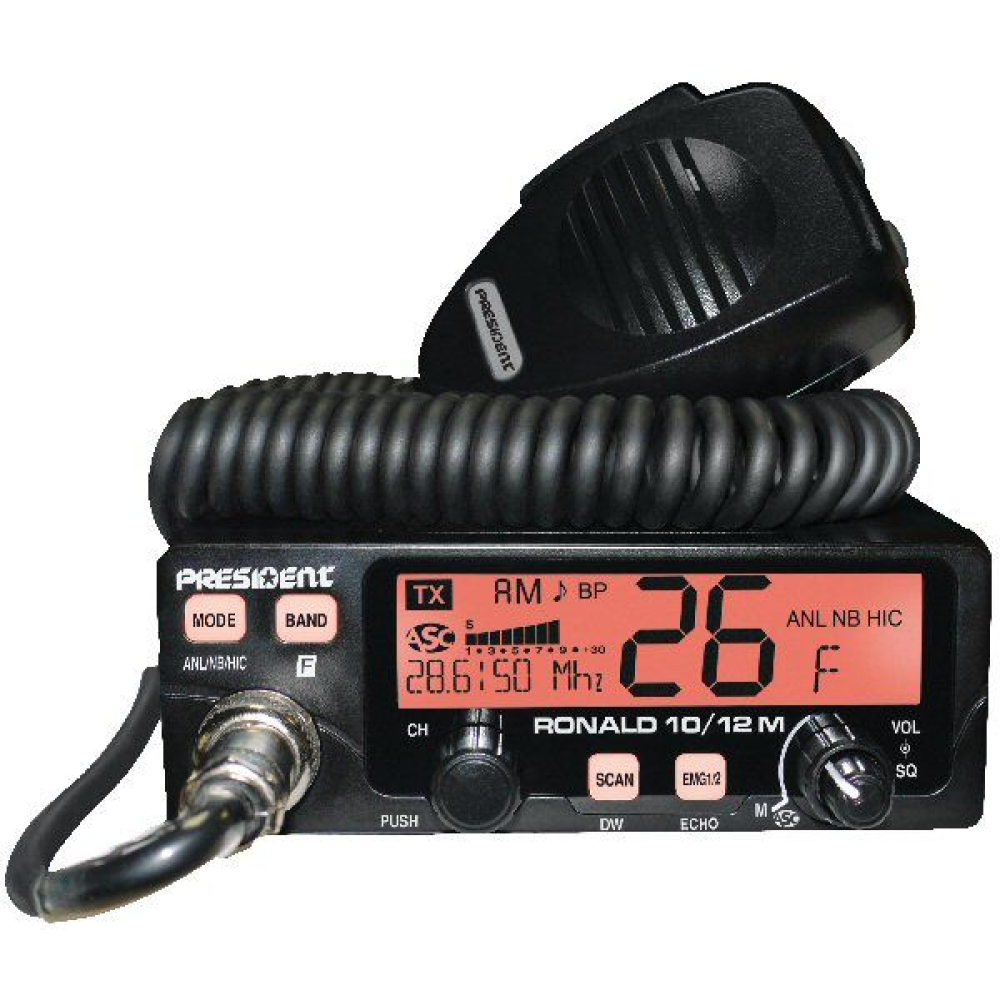 De President Ronald is een 10 & 12 meter transceiver met een frequentie bereik van 28.000 tot 29.700 MHz (10M) & van 24.890 tot 24.990 MHz (12M) maar kan ook als een export transceiver met een frequentiebereik van 24.715 tot 30.105 Mhz geleverd worden, zodat de President Ronald ook gebruikt kan worden als 27 MC transceiver. De President Ronald heeft een 7 Kleurig multi functioneel display waarvan de kleur zelf is in te stellen in de kleuren Rood, Blauw, Lichtblauw, Zeeblauw, Groen, Lichtgroen of Violet. De President Ronald werkt alleen op 12 volt.