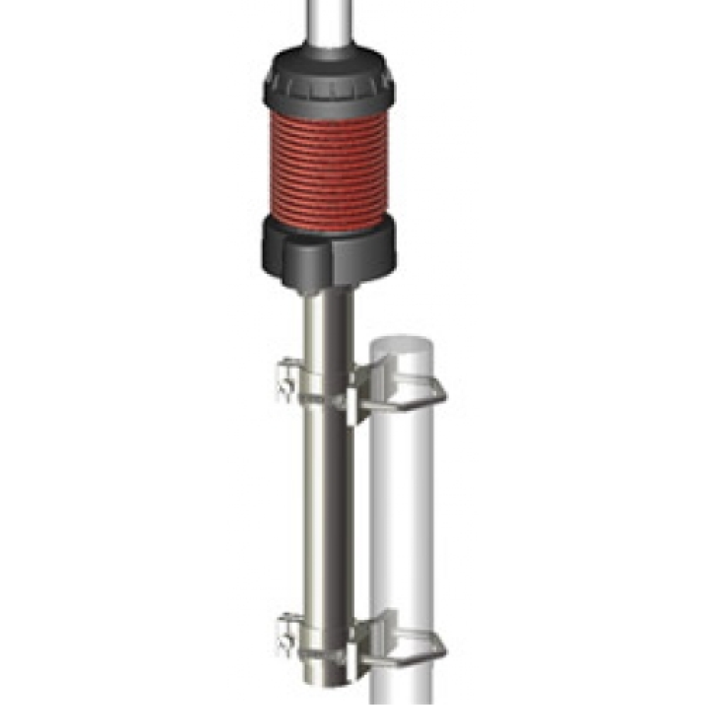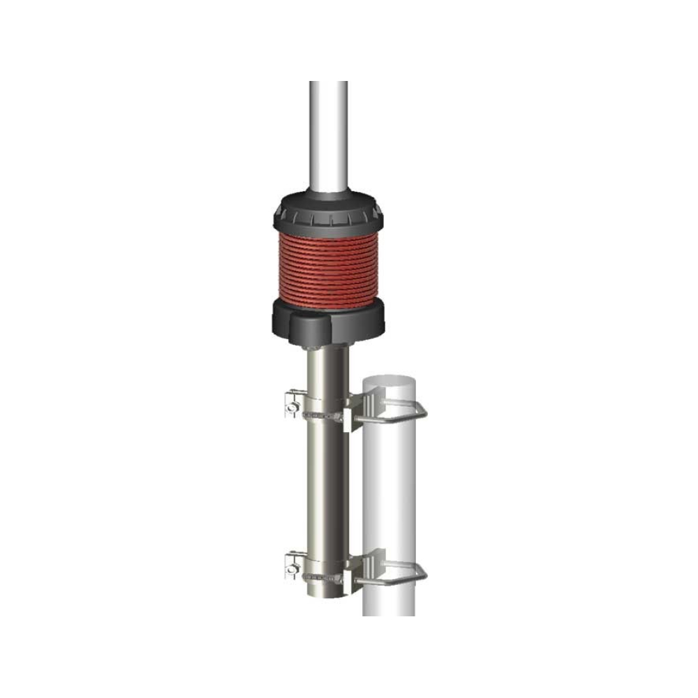 De coaxiale spoel aan de onderkant werkt als een RF-smoorspoel voor optimale ontkoppeling van de mast en de voedingslijn.